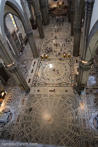 Begun in 1296, it took 150 years to complete. To quote our Lonely Planet guide, "...among Italy's top 3 [sites], (Pisa & Colosseum), it's red-tiled dome, graceful bell tower and breathtaking pink, green and white marble facade have the wow factor in spades." We have found our favourite spots on the outskirts of the city, with always the Dome in view. And we save an interior visit until this last week, wanting to learn as much as we can about the history, art, music, patrons, rulers, clergy, Bonfire of the Vanities!, and more before we step inside.
